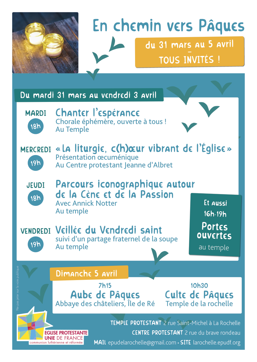 Tout au long de la Semaine Sainte, des rendez-vous pour tous : chant, conférence, parcours iconographique, Vendredi Saint, Aube de Pâques... Plus de détails ici :